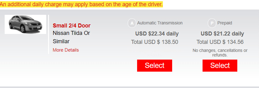 Despite all my search tactics, the best car rental prices were on the Economy Rent A Car website for both regular and underage rental prices.